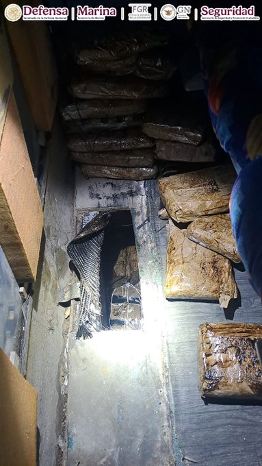 Se localizaron 17 paquetes envueltos en cinta canela con una sustancia con las características de la heroína, con un peso aproximado de 16 kilos, así como 33 paquetes adicionales con una mezcla de heroína y fentanilo, con un peso cercano a los 32 kilos.